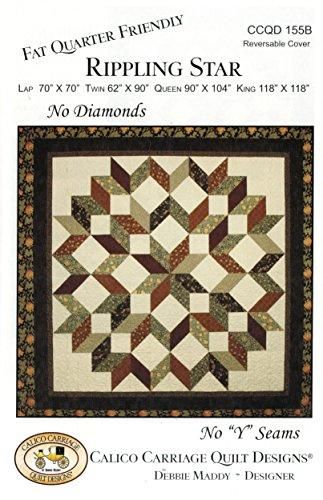 リップリングスターキルトパターン、ダイヤモンドなし、Yシームなし、ファットクォーターフレンドリー、4サイズオプション