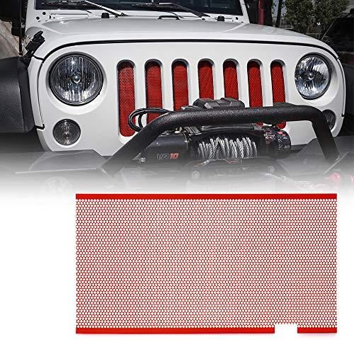 Xpriteレッドステンレススチールメッシュ挿入for Jeep Wrangler JK JKU 2007??2017元フロントフードマットグリルグリルグリッド