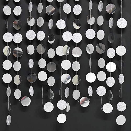 Decor365 グリッター シルバー サークル ドット ガーランド 紙 ハンギング ポーク ドット ストリーマー パーティー 装飾 バンティング バナー 背景
