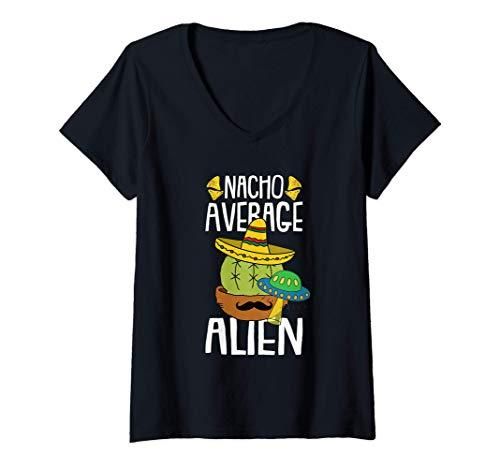 Womens Nacho Average Alien Cinco De Mayo Funny UFO Mexican Fiesta V-Neck T-Shirt