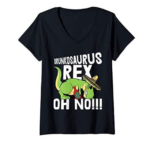 Womens Drunk-o-Saurus Cinco De Mayo T-rex Dinosaur Drinking Mexican V-Neck T-Shi