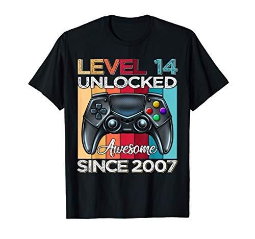 Level 14 Unlocked Awesome Since 2007 14th Birthday Gaming T-Shirt