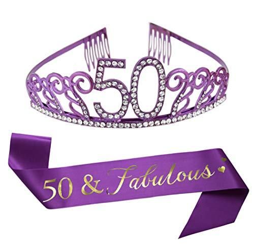 50th Birthday Purple Tiara and Sash Purple Glitter Sash Crystal Rhinestone Tiara