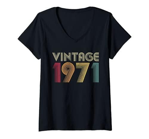 Womens 1971 50th Birthday Vintage Retro Men Women 50 Years Old V-Neck T-Shirt