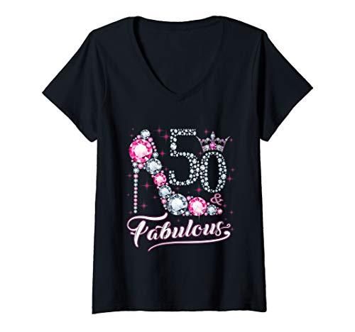 Womens 50 And & Fabulous 1970 50Th Birthday Gift Tee For Womens V-Neck T-Shirt