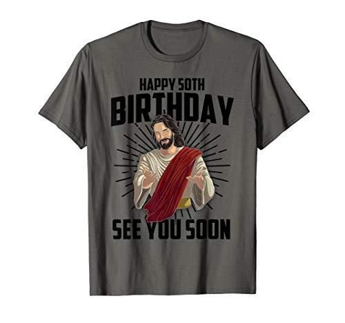 Cool Happy 50th Birthday Gift Funny Jesus See You Soon Gag T-Shirt
