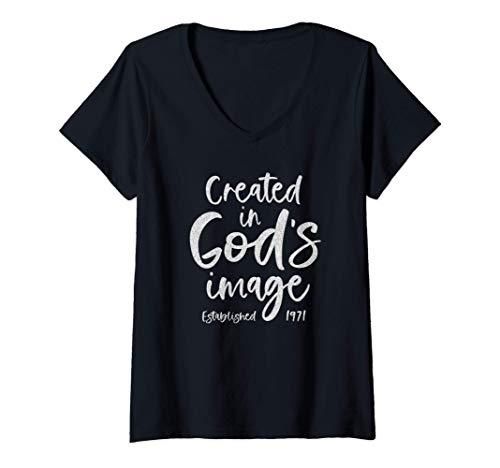 Womens Gift for 50 Year Old Christian Jesus 1971 50th Birthday V-Neck T-Shirt