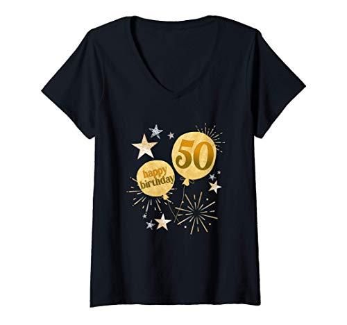 Womens Happy 50th Birthday Shirt 50 Year Old Birthday Gifts Shirt V-Neck T-Shirt