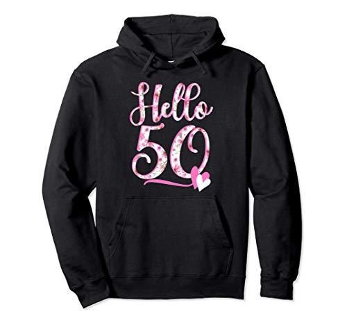Hello Fifty 50 years old 50th Birthday Women's Gifts Flowers Pullover Hoodie