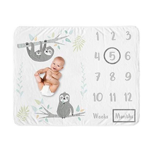Sweet Jojo Designs Blue Jungle Sloth Boy Girl Milestone Blanket Monthly Newborn