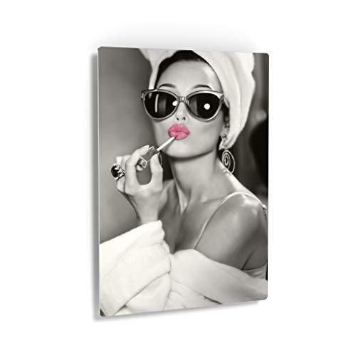 スマイルアートデザイン オードリー・ヘプバーン ウォールアート ピンクの唇 メタルプリント リップスティック メイクアップ アイコニック ポップアート かわいい