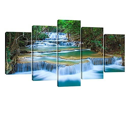 Wieco Art 穏やかな滝 モダンなジークレーキャンバスプリント 伸縮性のあるフレーム付きキャンパスウォールアート ご家庭 オフィスデコレーション 海景画