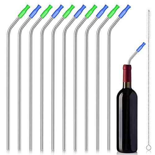 10 Pieces 14 Inch Stainless Steel Straw 100 oz Drinking Straw with 10 Silicone T