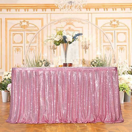 Juya Delight スパンコール テーブルスカート 長方形 円形 テーブルカバー パーティー ウェディング ベビーシャワー装飾 L 6ftH 30in ピ