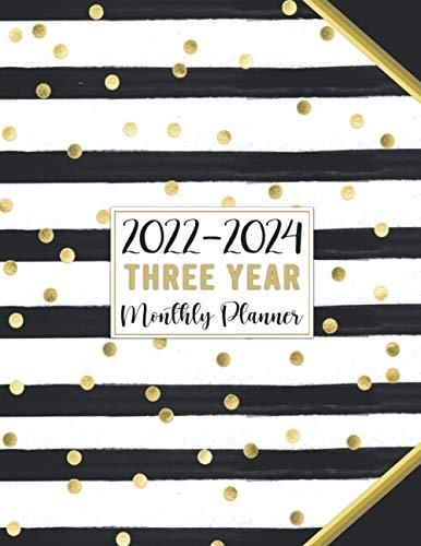 2022-2024 Three Year Planner - Pretty Gold Stripes Design At a Glance 36 Months