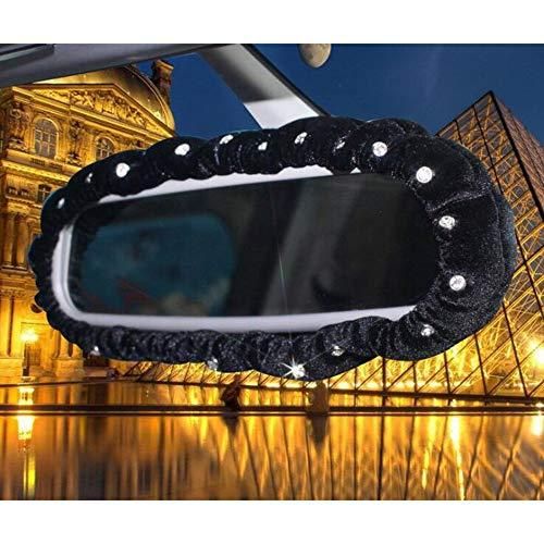 LuckySHD フラシ天 車用 伸縮性 バックミラーカバー キラキララインストーン装飾 レディース ブラック