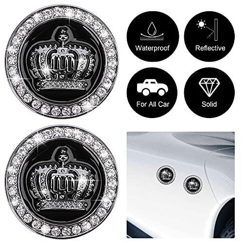 OIIKI 2PCS 3D Crown Car Emblem Badge Decal Bling Diamond Metal Princess Crown Em