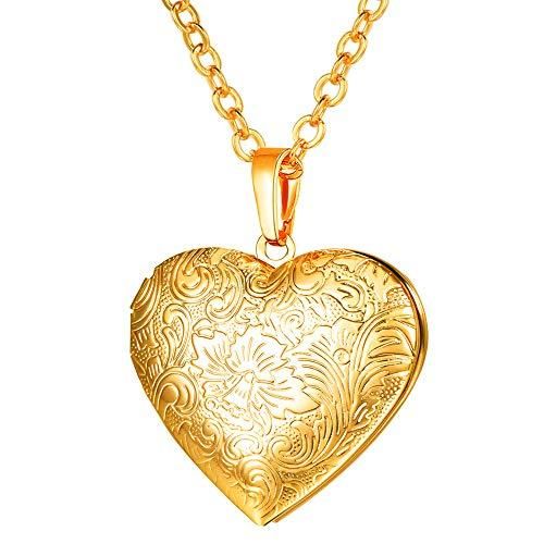 u7ロケットネックレスwithロロチェーン22?花刻印ハート型ペンダントガールズレディースバレンタインジュエリー??ギフト梱包