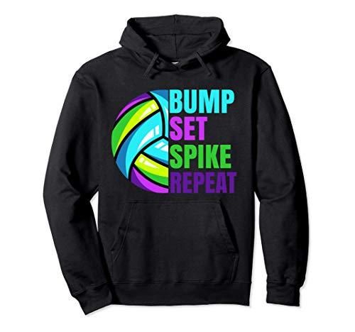 Girls Volleyball Bump Set Spike Repeat Blue Purple Teen Pullover Hoodie