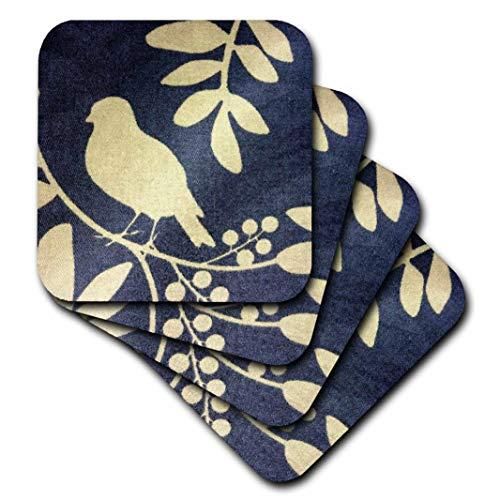 set-of-4-Soft - 3dRose cst_39683_1 Ivory Bird on Navy Blue Soft Coasters Set of