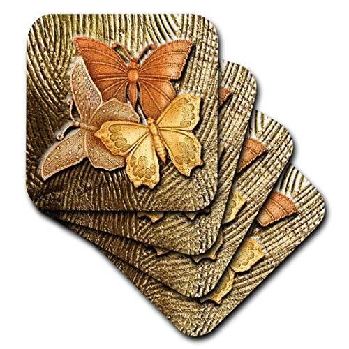 Spiritual Awakenings Nature??ゴールドエンボスGolds背景にアクセントと3つの美しい蝶、黄、銅。??コースター set-of-4-