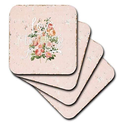 3drose Uta Naumann Typography水彩??Typography Love水彩ピンクヴィンテージshabby-chic花花??コースター