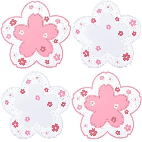 サクラPVCコースター 桜カップコースター 滑り止め断熱コースター ビール、コーヒー、テーブルウェア、ティー用4、4.5インチ
