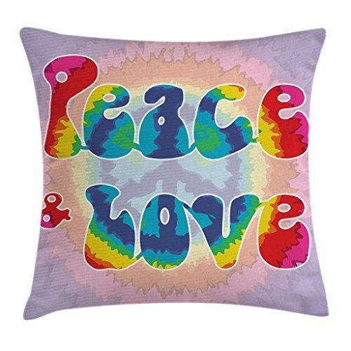 Groovyスロー枕クッションカバーby Ambesonne、Peace and Loveテキストin Tie Dye PatternエネルギッシュYouthf