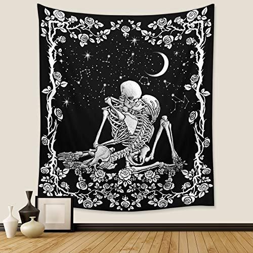 Wonrizon The Kissing Lovers Skull TapestryBlack and White Romantic Constellation