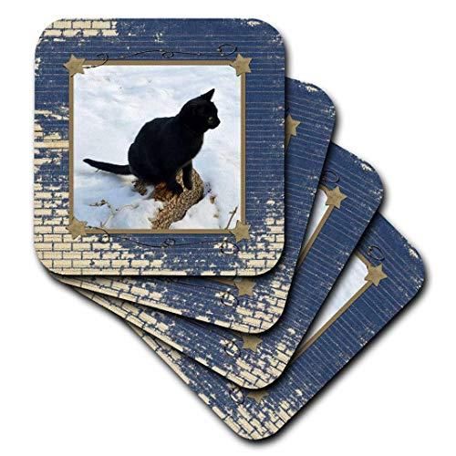 set-of-8-Soft - 3dRose cst_180848_2 Frisky Black Cat on Log in Snow Ready to Lea