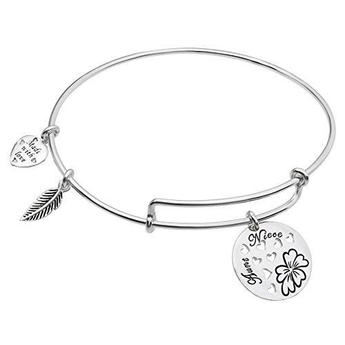 スターリングシルバー叔母姪ハートダングルチャーム拡張可能なバングルブレスレット