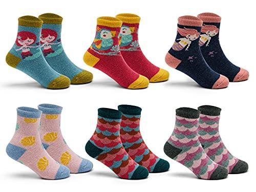 Girls Wool Socks Kids Winter Warm Socks Thermal Crew Socks for Girls 6 Pairs Mer