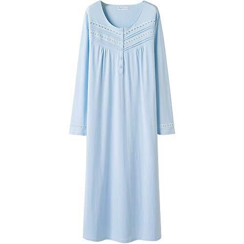 Keyocean ナイトガウン レディース コットン100% ソフト 軽量 長袖 レディース 寝間着 自宅病院用 US サイズ X-Large カラー ブルー