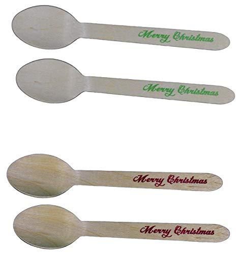 Disposable Wooden Spoons with Merry Christmas Print - 24 Pack of Red & 24 Pack o