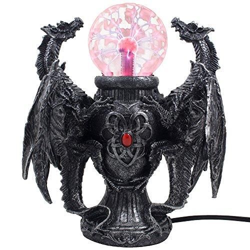 Mythical Guardian Dragon Duo WatchingクリスタルボールテーブルランプとメタリックLook花瓶像の中世ホームDecor Glo