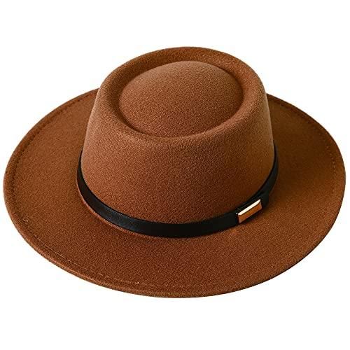 Lanzom Women Vintage Wide Brim Warm Wool Fedora Hat Belt Panama Hat Felt Jazz Ha