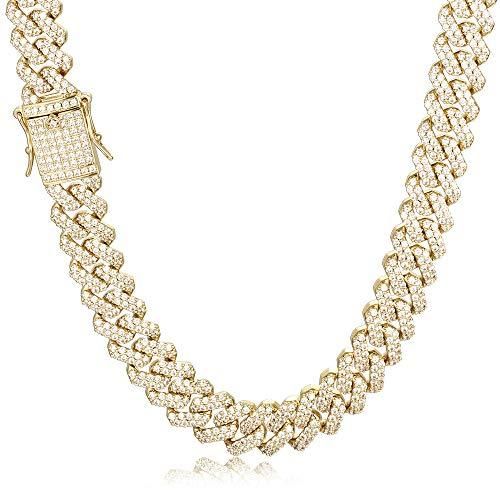 PY Bling 12mm 8.5〜30インチ アイスアウトキューバリンク 14Kゴールド電気メッキ ソリッドチョーカーネックレス/ブレスレット フラッドキュー