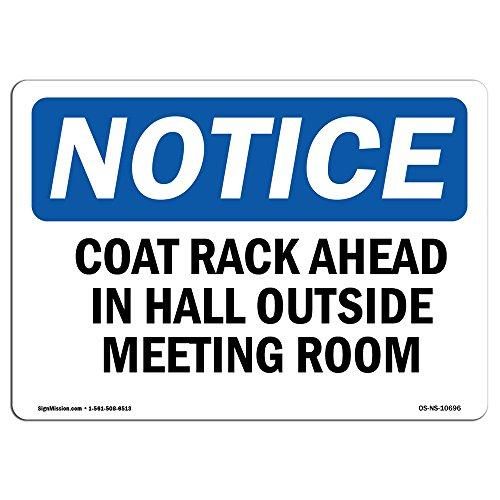 OSHA Notice Sign - Coat Rack Ahead in Hall Outside Meeting Room Vinyl Label Dec