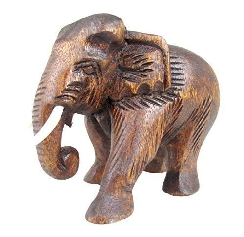 Land of Simple Treasures 手彫り 木製 象像 - タイから木象の彫刻 - 風水象のフィギュア - ブラウン 5.5インチ