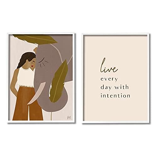 Stupell Industries Live Everyday with Intention Woman Resting Against Elephant D