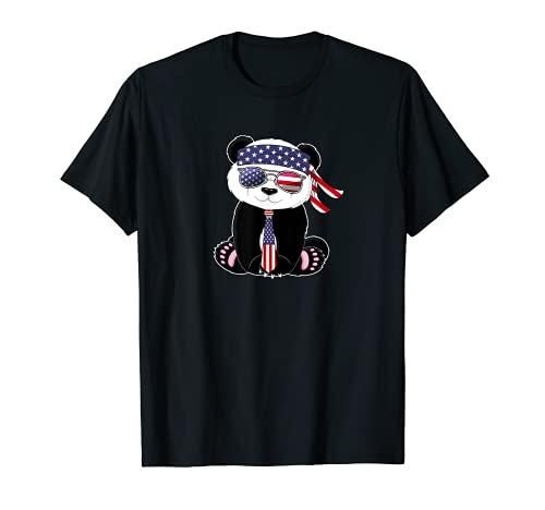 Patriotic Panda Bear Sunglasses Headband Necktie US Flag T-Shirt