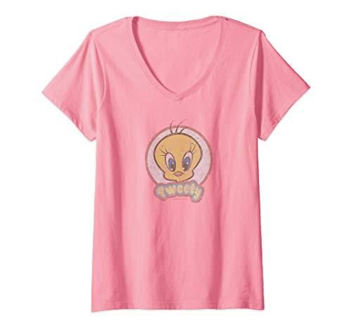 Womens Looney Tunes Retro Tweety V-Neck T-Shirt
