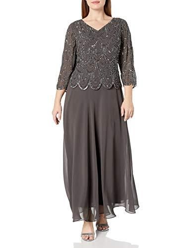 J Kara レディース プラスサイズ 七分袖 スカラップビーズ ポップオーバー ガウン US サイズ 18W カラー グレイ