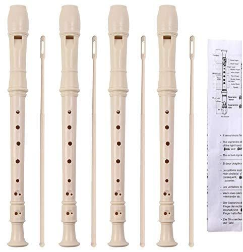 4 Pack 8 Hole Plastic Soprano Descant Recorder With Cleaning Rod Instruction and