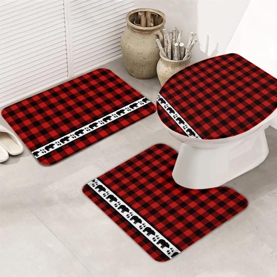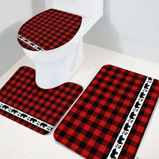 Z&L Home 3 Pieces?Bathroom?Rugs?and?Mats?Sets Farm Red and Black Buffalo PlaidNo