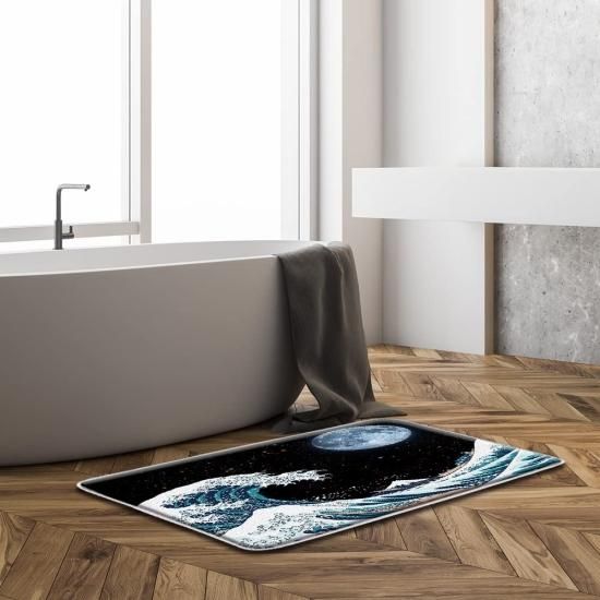 Hokusai Great Wave Moon Bath MatJapanese Great Wave of Kanagawa Ocean Boat Mount