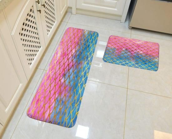 Mimihome マーメイドスケールバスラグ 水彩 魚テーマ バスマット フランネル スーパーソフト 吸収性 ノンスリップ バスマット バスルーム キッチン フ