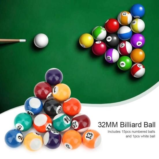 Keenso Billard Pool Balls 16 Pcs 32mm Eco?Friendly Polyester Resin Pool Cue Trai