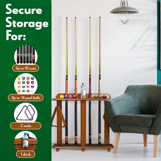 Iszy Billiards Pool Stick Rack - Cue Rack Only - Wood Floor Stand Holds 10 Pool