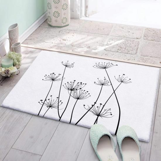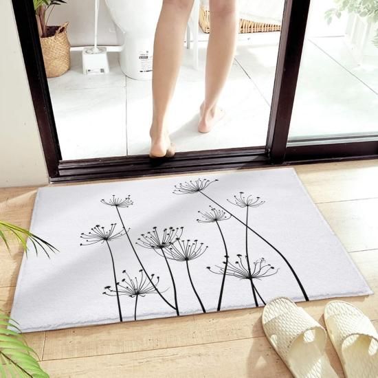 Prime Leader Bathroom Rug Shaggy Bath Mat Beauty Dandelion Plant Pattern Black a